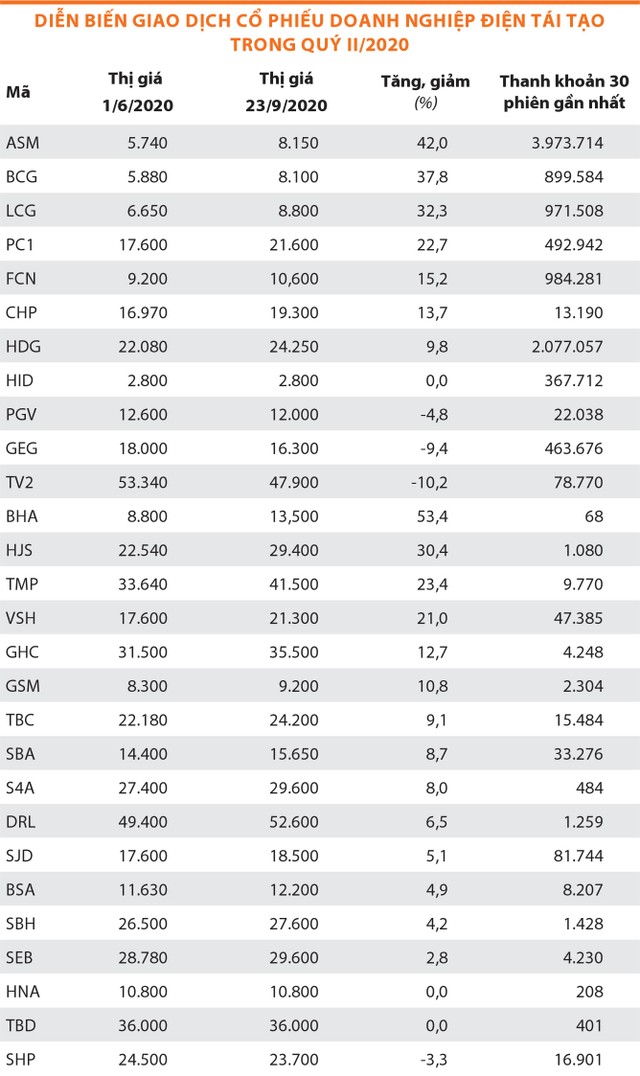 Trong khi cổ phiếu các doanh nghiệp thủy điện, điện than, điện khí (đã hoàn tất dự án đầu tư) chủ yếu thu hút nhà đầu tư dài hạn, ưa thích cổ tức, dẫn tới thanh khoản khá thấp thì cổ phiếu của những doanh nghiệp mới đẩy mạnh đầu tư điện mặt trời gần đây lại có thanh khoản và biến động giá tốt cho các nhà đầu tư lướt sóng.