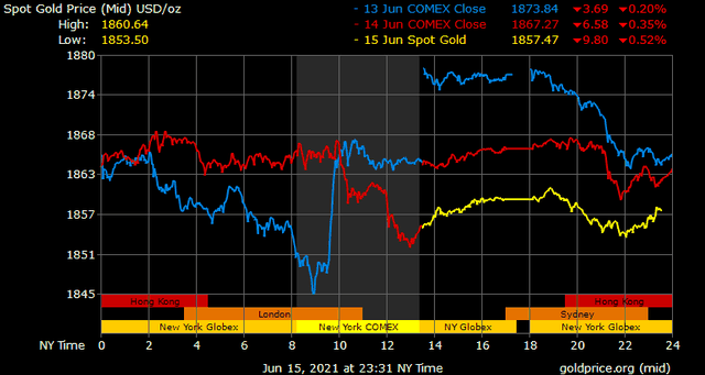 Trên thị trường vàng thế giới, giá vàng giao ngay chốt phiên đêm tại Mỹ giảm 7,2 USD xuống 1.858,7 USD/ounce. Sang phiên châu Á sáng nay, giá vàng tiếp tục giảm về gần 1.855 USD/ounce.