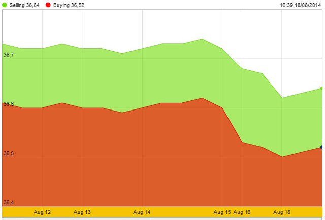 Các ngoại tệ khác đồng loạt tăng, trong đó tăng mạnh nhất là CHF với 0,37%; tiếp đến là EUR và GBP cùng tăng 0,21%...