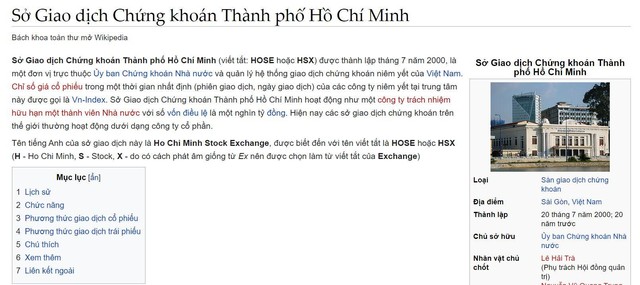 Trên một kênh khác là Wikipedia, nội dung giới thiệu về HOSE cũng có sự thay đổi theo thời gian. Trước đó, HOSE được mô tả là “sàn chứng khoán có chất lượng dịch vụ thuộc hàng thấp kém nhất thế giới và ban lãnh đạo yếu kém, không có tầm nhìn. HOSE nổi tiếng với việc bị cộng đồng nhà đầu tư đồng loạt đánh giá 1 sao trên Google sau khi không cho hủy/sửa lệnh”.