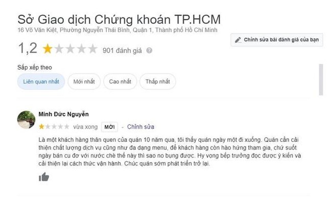 Tuy nhiên, đến khoảng 18h ngày 9/6, toàn bộ đánh giá và bình luận của người dùng trên Google đã biến mất. Điểm đánh giá trên Google trở về con số cũ 4.4/5 với 41 đánh giá.