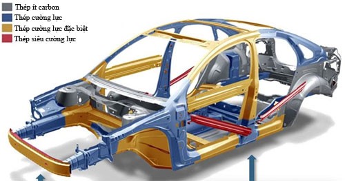 Một ví dụ về kết cấu khung xe với các loại thép cường lực.