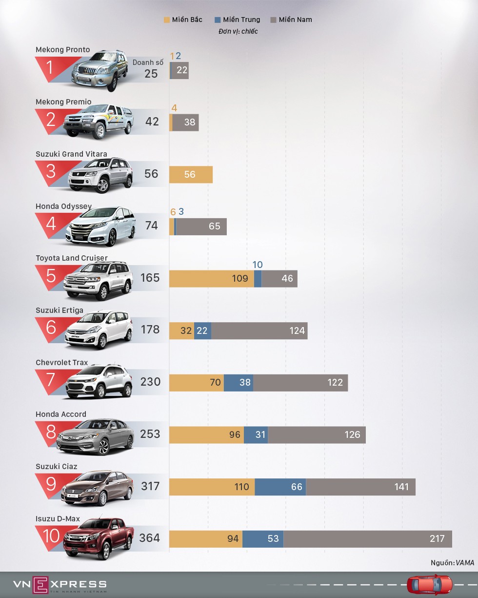Honda góp 2 đại diện Odyssey, Accord, cùng với Suzuki Grand Vitara, hay cặp đôi nhà Mekong là những cái tên quen thuộc.