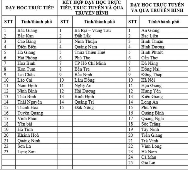 Đối với các địa bàn được xác định dịch ở cấp độ 3 (nguy cơ cao), tổ chức dạy học trực tiếp kết hợp với dạy học trực tuyến, trên truyền hình.