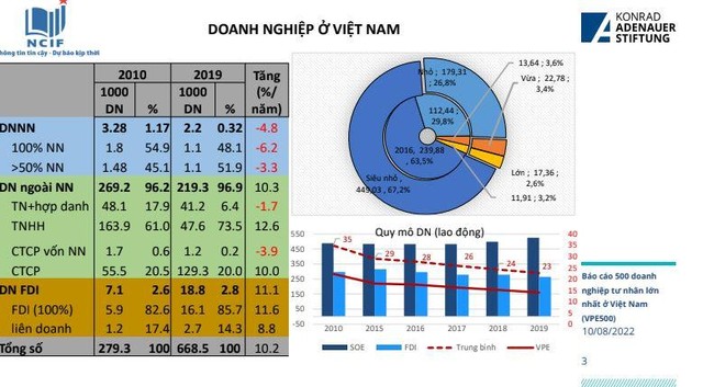 Theo ông Florian Constantin Feyerabend, Trưởng đại diện Viện Konrad Andenauer Stiftung Việt Nam kinh tế tư nhân Việt Nam được công nhận từ những năm 1990 và ngày càng trở thành một khu vực quan trọng của nền kinh tế với 97% doanh nghiệp hoạt động tại Việt Nam thuộc khu vực tư nhân và đang tuyển dụng 60% lao động đang làm việc, tạo ra khoảng 67% doanh thu của toàn bộ doanh nghiệp.