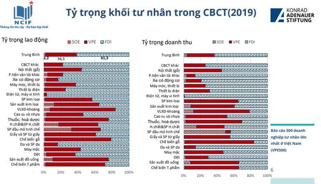 Chỉ riêng nhóm 500 doanh nghiệp tư nhân lớn nhất Việt Nam (chiếm 0,089% tổng số doanh nghiệp) nhưng đã tạo việc làm cho 10,4% lao động, chiếm 13% tổng tài sản và tạo ra 15,8% doanh thu thuần.