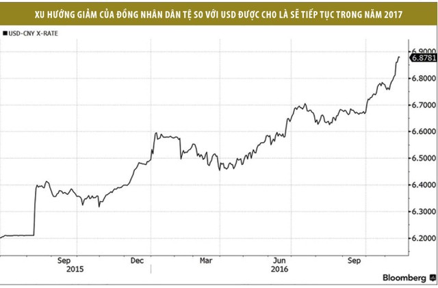 Thực tế, việc đồng nhân dân tệ mất giá đã được nhìn nhận kể từ thời điểm Trung Quốc bất ngờ phá giá nhân dân tệ vào tháng 8/2015, khuấy động thị trường tài chính toàn cầu. Các chuyên gia của Goldman Sachs cho rằng, xu hướng giảm này sẽ tiếp tục trong năm 2017.