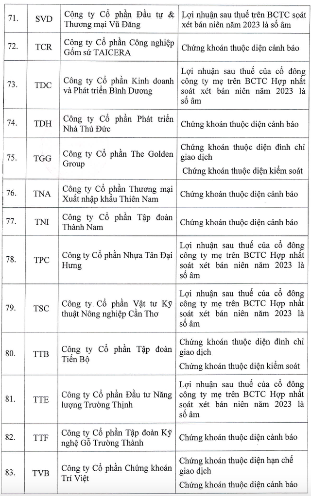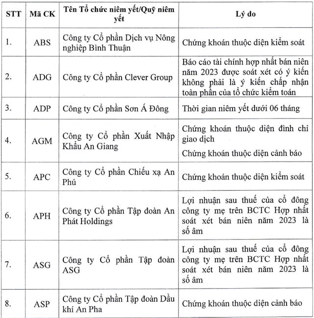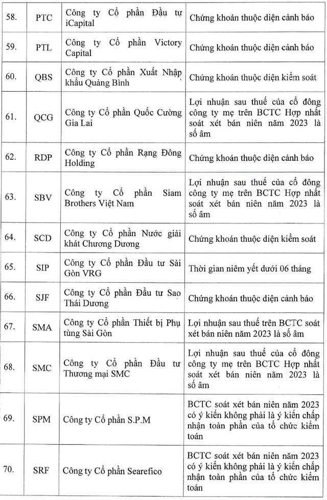 Trong những cổ phiếu bị cắt margin đợt này, nhiều cổ phiếu có nguyên nhân do BCTC hợp nhất bán niên năm 2023 soát xét có ý kiến không phải là ý kiến chấp nhận toàn phần của tổ chức kiểm toán như: ADG, DAH, SPM, SRF.