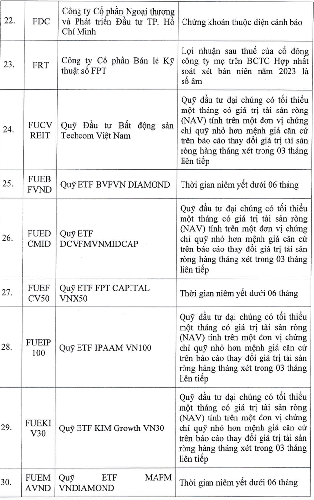 Do thời gian niêm yết dưới 6 tháng nên ADP, SIP cũng chưa được cấp margin đợt này. Ngoài ra, FUCVREIT, FUEDCMID, FUEIP100, FUEKIV30 là những quỹ đầu tư đại chúng có tối thiểu một tháng có giá trị tài sản ròng (NAV) tính trên một đơn vị chứng chỉ quỹ nhỏ hơn mệnh giá căn cứ trên báo cáo thay đổi giá trị tài sản ròng hàng tháng xét trong 03 tháng liên tiếp nên không được cấp margin.
