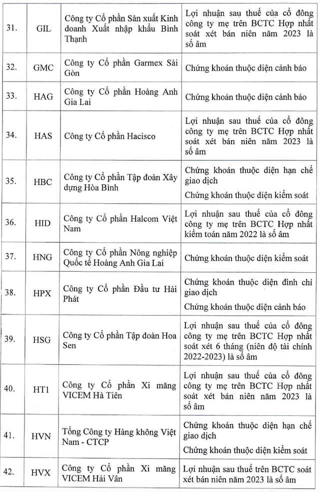 Một số cổ phiếu nằm trong danh sách do lợi nhuận sau thuế trên BCTC tổng hợp soát xét hoặc của cổ đông cổ đông ty mẹ trên BCTC hợp nhất soát xét bán niên năm 2023 là số âm, có thể kể đến: APH, DC4, DRH, DTL, DXS, FRT, HSG, HT1, PLP, QCG…