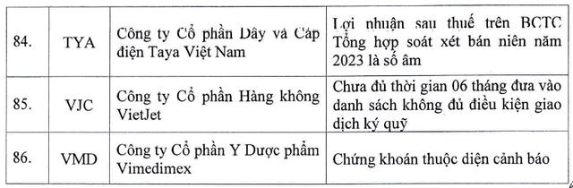 (ĐTCK) Sở Giao dịch Chứng khoán TP.HCM (HOSE) mới công bố danh sách 86 cổ phiếu không đủ điều kiện giao dịch ký quỹ trong quý IV.