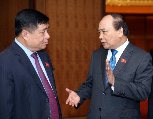 Thủ tướng Nguyễn Xuân Phúc trao đổi với Bộ trưởng Kế hoạch Đầu tư Nguyễn Chí Dũng tại kỳ họp Quốc hội tháng 5/2018. Bộ Kế hoạch Đầu tư là đơn vị chủ trì xây dựng dự án Luật Đặc khu. Ảnh:Hoàng Phong.