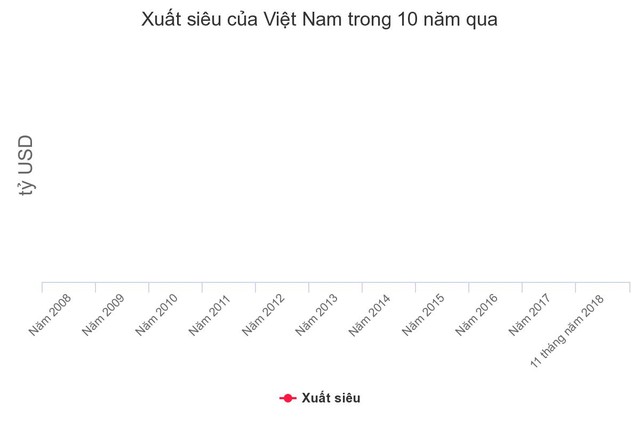 Mục tiêu từ đầu năm, xuất khẩu tăng trưởng 10%, nhập siêu dưới 3%. Với những gì đạt được trong 11 tháng, cán cân thương mại đã lội ngược dòng, tiếp tục thặng dư. Tính chung, Việt Nam ghi nhận xuất siêu hơn 7,4 tỷ USD, gấp 2,5 lần số liệu xuất siêu 2,92 tỷ USD năm 2017 và cao nhất trong 10 năm qua. Dự báo, xuất siêu của Việt Nam sẽ tiếp tục tăng trong tháng 12, có thể tiến sát mốc hai con số.