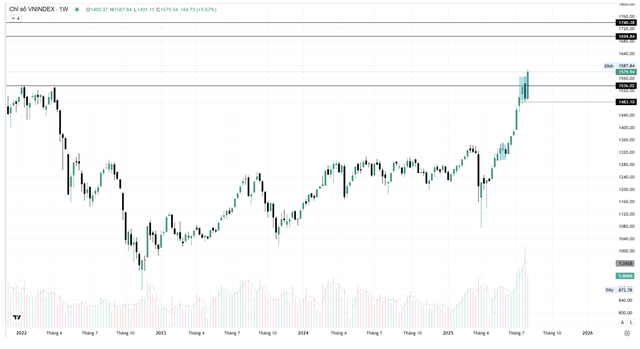 (ĐTCK) Thị trường tháng 8 nhiều khả năng sẽ bứt phá nếu đóng cửa trên mốc 1.590 điểm; trong trường hợp ngược lại, VN-Index có thể lùi về các vùng hỗ trợ trước khi lấy lại đà tăng.