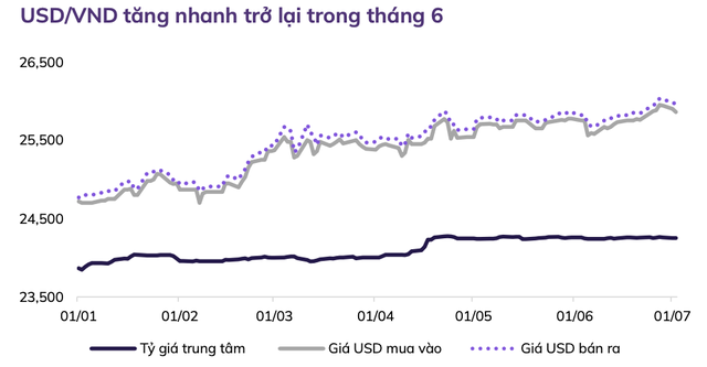 Về tỷ giá, tính chung 6 tháng năm 2024, tỷ giá USD/VND đã tăng hơn 5%, buộc NHNN phải bán ra xấp xỉ 6 tỷ USD để ổn định thị trường. Tuy nhiên trong tháng 7, tốc độ tăng giá của cặp tiền tệ này được dự báo là sẽ không còn nhanh nữa hoặc thậm chí còn quay đầu giảm khi lãi suất điều hành và lãi suất thị trường tiền đồng đã và đang tăng trở lại; cán cân thương mại đã thặng dư trở lại gần 3 tỷ USD trong tháng 6, lượng vốn FDI thực hiện tiếp tục tích cực, triển vọng Fed bắt đầu giảm lãi suất từ tháng 9 năm nay rõ ràng hơn.