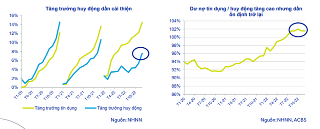 Tính đến cuối năm 2022, tăng trưởng tín dụng toàn hệ thống ngân hàng 14,2%, cao hơn so với tăng trưởng huy động khoảng 7%. Huy động toàn hệ thống đã bắt đầu cải thiện từ tháng 11/2022, sau khi huy động trên thị trường dân cư đã tăng lên mức hấp dẫn.
