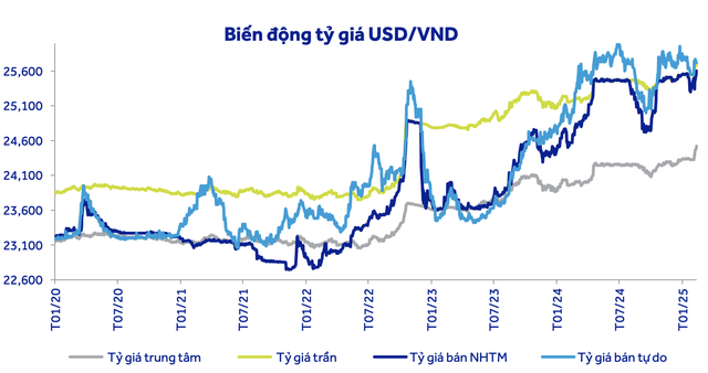 Trong ngắn hạn, áp lực từ thương chiến có thể đẩy tỷ giá USD/VND lên cao hơn nữa. Tuy nhiên, ACBS cho rằng áp lực tỷ giá sẽ ổn định trở lại về cuối năm 2025 nhờ hai yếu tố.