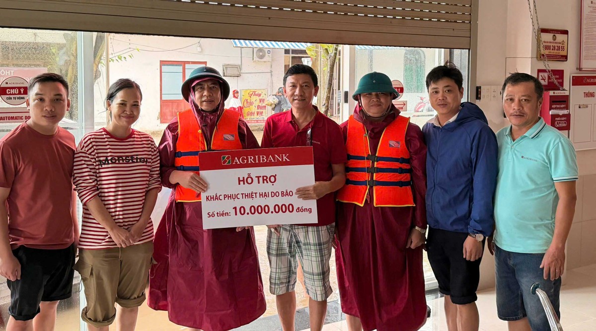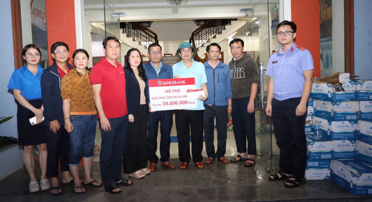 Thể hiện tinh thần trách nhiệm xã hội và truyền thống “Agribank - Nghĩa tình vì cộng đồng”, ngay sau bão, các đoàn công tác của Agribank đã trực tiếp đến các địa phương bị ảnh hưởng nặng nề để nắm bắt tình hình thiệt hại, chỉ đạo hỗ trợ khách hàng và trao kinh phí an sinh xã hội hỗ trợ chính quyền và nhân dân địa phương khắc phục hậu quả.