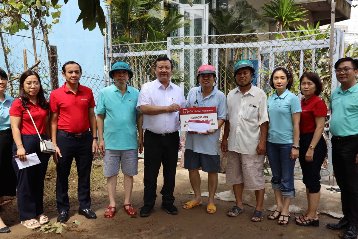 Ông Phạm Toàn Vượng (thứ ba từ phải), Phó Bí thư Đảng uỷ, Tổng giám đốc Agribank cùng đoàn công tác thăm và tặng quà cho khách hàng bị thiệt hại bão lũ tại khu vực miền Trung và Tây Nguyên.