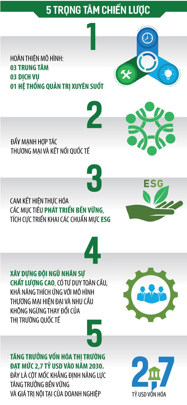 5. Tăng trưởng vốn hóa thị trường đạt mức 2,7 tỷ USD vào năm 2030. Đây là cột mốc khẳng định năng lực tăng trưởng bền vững và giá trị nội tại của doanh nghiệp.