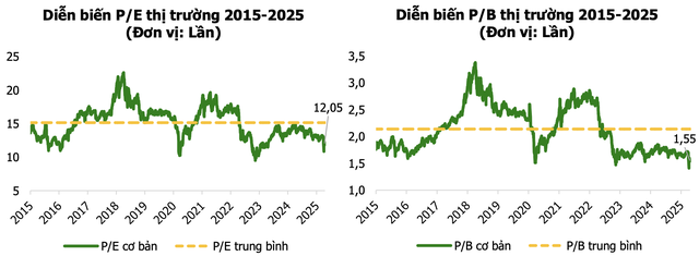 Sự điều chỉnh của thị trường đã khiến mặt bằng định giá nhiều cổ phiếu trở nên hấp dẫn hơn so với trước đây, thể hiện qua các chỉ số như P/E và P/B.