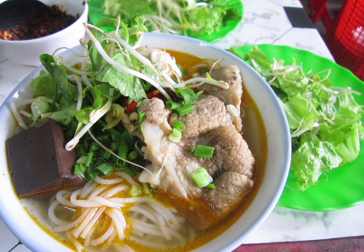 Nồi bún bò Huế với nước bún, thịt bò, giò heo, chả tôm, gạch cua, huyết… được người phụ nữ Huế đảm đang nội trợ nêm nếm sả, ớt màu, ớt bột, tiêu, tỏi, hành… rất tính toán, chi li, cẩn thận, cốt sao để phù hợp với khí trời và khẩu vị chung cho cả các khách hàng.