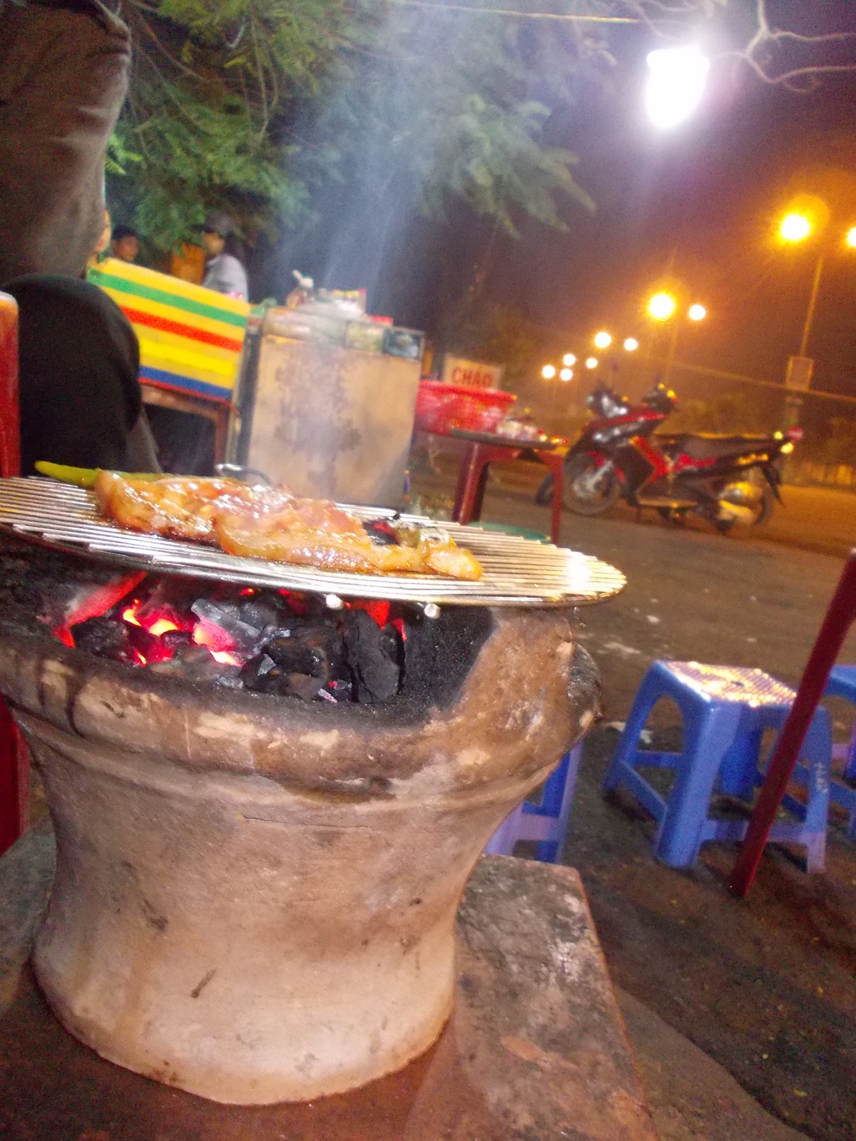 Để thưởng thức được những món nướng ngon, du khách cần phải giữ cho bếp than luôn rực hồng bằng cách… quạt tay và phải dùng đũa trở liên tục nguyên liệu để không bị cháy xém. Khi hương thơm bốc lên cùng làn khói bếp lò cũng là lúc nguyên liệu đã chín, thực khách cũng sẽ tự mình gói ghém những miếng thịt nướng, ếch nướng, bạch tuộc nướng, chim nướng… thơm lừng vào những lá cải, kèm dưa leo để chắm ăn với muối ớt.