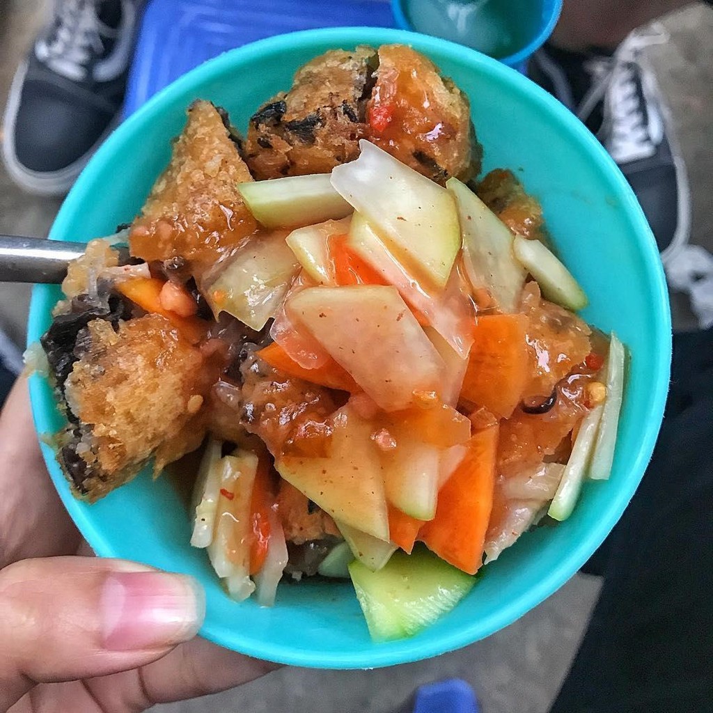 Bánh rán mặn cũng luôn nằm trong danh sách những món ăn ngày mưa. Chiếc bánh mới rán xong còn nóng hổi, thơm lừng, tan trong miệng với nhân thịt xay, mộc nhĩ, nấm... Để món ăn thêm trọn vị, bạn nên chấm cùng với nước mắm pha loãng có thêm vài miếng đu đủ xanh chua ngọt. Bạn có thể dễ dàng bắt gặp những quán bánh rán ở các con phố như Phương Mai, Hàng Chiếu, Thụy Khuê, Nguyễn Quý Đức. Giá: Khoảng 10.000 đồng/chiếc.