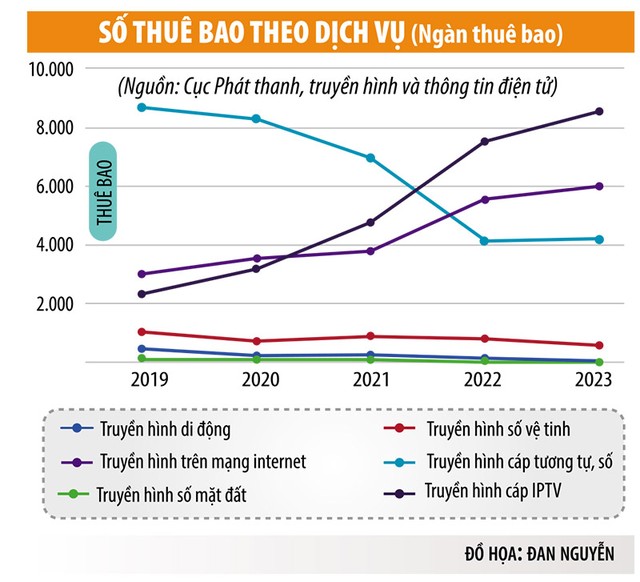 Không chỉ là nghịch lý “thuê bao tăng mạnh, doanh thu thấp đi”, mà ngay trong nội bộ phân khúc truyền hình trả tiền cũng có sự phân hóa rất mạnh. Phân khúc truyền hình OTT có sự tăng trưởng mạnh, trong khi thuê bao truyền hình cáp sụt giảm rất mạnh, còn truyền hình số mặt đất thì đi ngang.