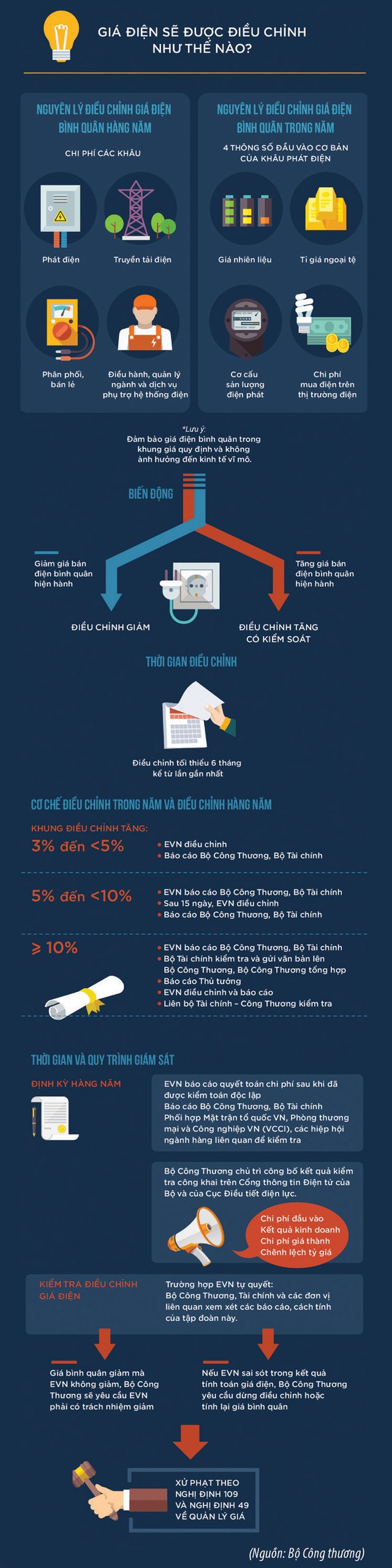 Theo đó, để bảo đảm EVN kinh doanh có lãi, tăng cường tiềm lực tài chính đầu tư vào phát điện, Bộ Công thương đã triển khai xây dựng kịch bản điều hành giá bán lẻ điện của năm 2019 trên cơ sở các quyết định của Thủ tướng Chính phủ như Quyết định số 24/2017/QĐ-TTg ngày 30/6/2017 về cơ chế điều chỉnh mức giá bán lẻ điện bình quân và Quyết định số 34/2017/QĐ-TTg ngày 25/7/2017 về khung giá của mức giá bán lẻ điện bình quân giai đoạn 2016-2020 và thực tiễn sản xuất kinh doanh của EVN.