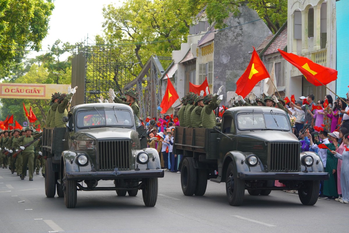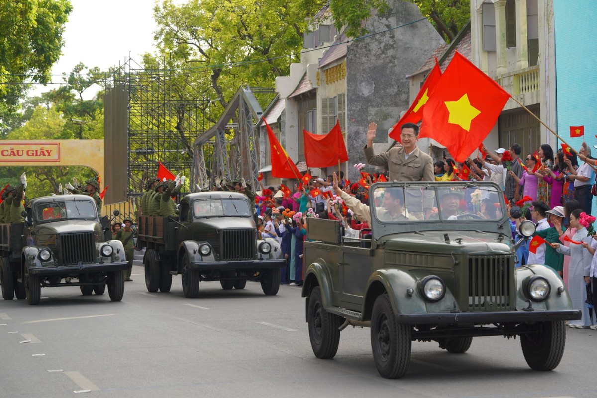 Một trong những điểm nhấn quan trọng của chương trình là màn tái hiện sống động về hình ảnh đoàn quân tiến về Hà Nội trong thời khắc lịch sử ngày 10/10/1954, khi quân đội Việt Nam tiếp quản Thủ đô, đánh dấu sự kết thúc ách đô hộ thực dân.