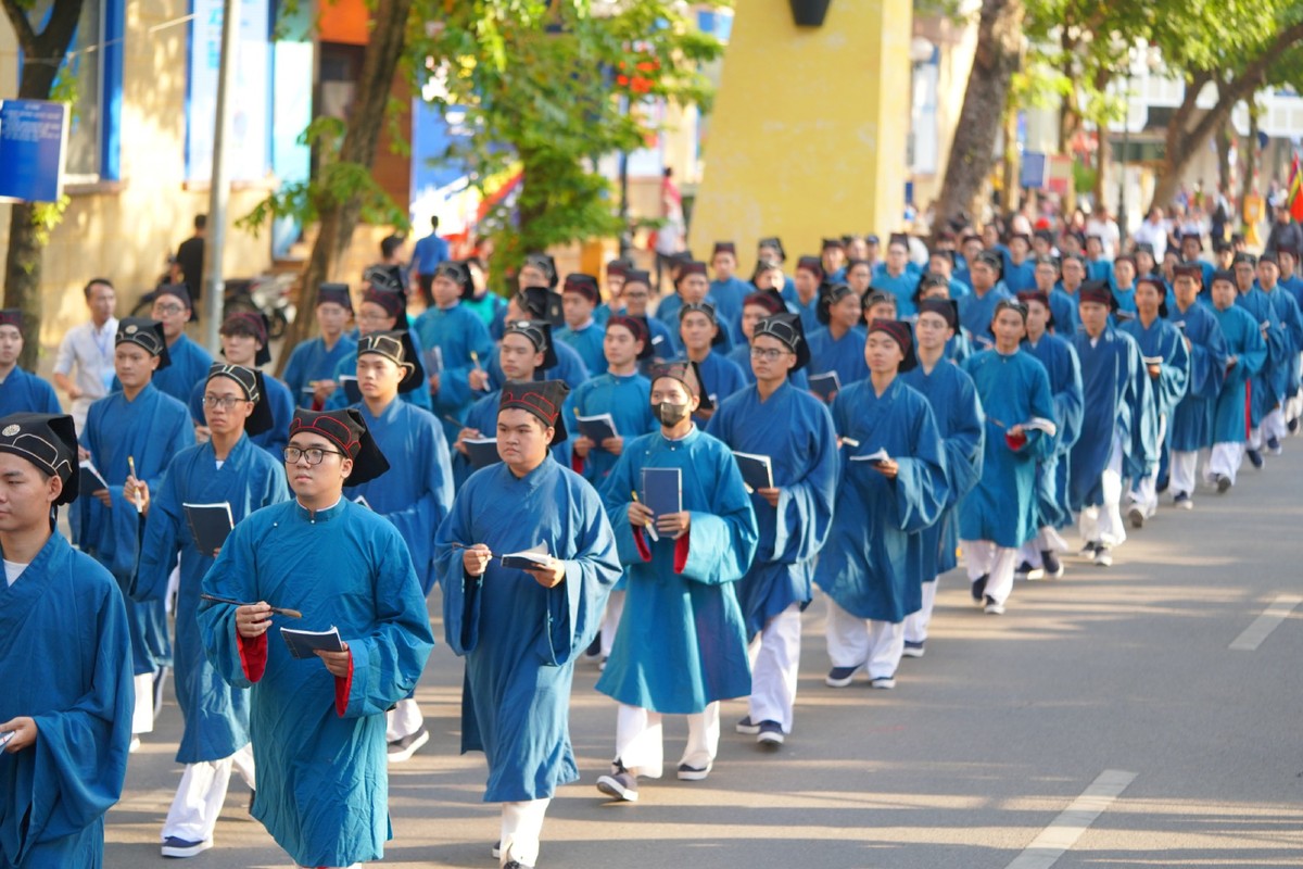 Tiếp theo là lễ chào cờ đặc biệt, tái hiện lại buổi lễ chào cờ đầu tiên tại Hà Nội vào ngày 10/10/1954, sau khi Thủ đô được giải phóng. Trong không khí trang trọng ấy, khoảng 10.000 đại biểu cùng tham dự và hát vang bài Quốc ca, tạo nên một khoảnh khắc đặc biệt thiêng liêng, thể hiện lòng tự hào dân tộc và khát vọng hòa bình.