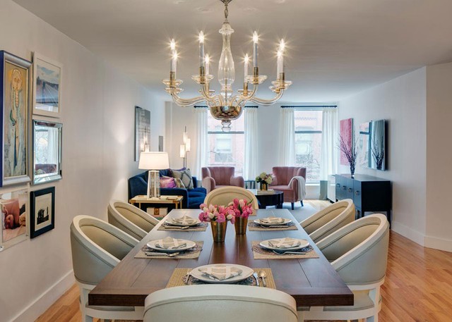 Những chiếc đèn chùm sơn sắc và bộ ghế sô pha truyền thống đã được thiết kế cách tân nơi chính giữa căn phòng, đồng thời tạo nét nhấn bằng một vài bức tranh nghệ thuật đương đại bên nhiều vật dụng sang trọng khác và “thổi hồn” cho phòng khách bằng thứ ánh sáng tự nhiên, hấp thu tinh hoa của trời đất, mang lại sinh khí, thịnh vượng cho chủ nhân.