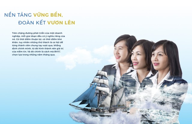 Nụ cười rạng rỡ của các cán bộ, nhân viên CTCK Bảo Việt và hình tượng một con thuyền căng buồm vượt sóng trong Báo cáo thường niên 2015 đã bổ trợ cho thông điệp, trên chặng đường phát triển của một doanh nghiệp có những thời điểm khó khăn, thử thách, song thử thách cũng là cơ hội để từng thành viên chung tay vượt qua. Điều đó đã được chứng minh bằng kết quả Công ty đã xóa được lỗ lũy kế sau 5 năm nỗ lực đồng tâm tái cấu trúc.