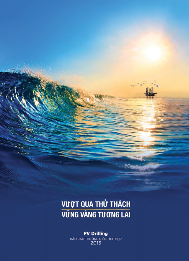 Hình ảnh giàn khoan dầu đứng vững giữa biển khơi, bị bủa vây bởi con sóng dữ trên trang bìa đã chuyển tải thông điệp, Tổng CTCP Khoan và dịch vụ khoan dầu khí (PVD) đã có một năm đầy thách thức. Giá dầu sụt giảm mạnh đã ảnh hưởng trực tiếp tới giá khoan và các hợp đồng của nhà thầu khoan số 1 Việt Nam, làm giảm doanh thu, lợi nhuận trong năm qua.