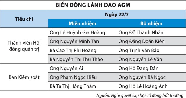 Sau biến động về cổ đông lớn, Ban lãnh đạo Công ty cũng có sự thay đổi. Cụ thể, ngày 22/7/2021, AGM tổ chức Đại hội cổ đông bất thường thông qua việc miễn nhiệm 4 thành viên Hội đồng quản trị và 3 thành viên Ban Kiểm soát, bầu bổ sung 7 người (xem bảng).