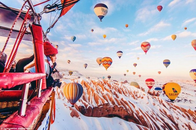 Cô gái 29 tuổi Kristina Makeeva từ Nga sang Thổ Nhĩ Kỳ để thực hiện bộ ảnh chụp những quả khinh khí cầu tại vùng đất Cappadocia, nơi đã có hơn 5.000 năm lịch sử.