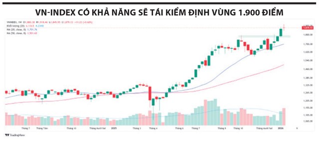 Về điểm số, VN-Index vẫn còn cơ hội tái kiểm định mốc 1.900 điểm khi áp lực bán tại nhóm trụ và ngân hàng có dấu hiệu suy yếu quanh các vùng hỗ trợ. Tuy nhiên, lực cầu nhìn chung vẫn dè dặt, trong khi rủi ro điều chỉnh kỹ thuật tại các nhóm ngành đã tăng nhanh vẫn hiện hữu. Theo đó, chỉ số có thể tiếp tục điều chỉnh với kỳ vọng biên độ không quá sâu. Vùng hỗ trợ gần 1.800 - 1.830 điểm được đánh giá đóng vai trò quan trọng trong việc giữ nhịp xu hướng. Chiến lược phù hợp là hạn chế mua đuổi, ưu tiên tận dụng các nhịp điều chỉnh để giải ngân chọn lọc vào các cổ phiếu dẫn dắt, có nền giá tích lũy tốt và dòng tiền duy trì tích cực.