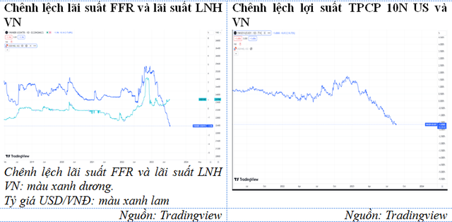 Ông Hoàng Công Tuấn, Kinh tế trưởng Chứng khoán MB (MBS) cũng cho rằng, yếu tố chính khiến VND giảm giá so với USD xuất phát từ chính sách tiền tệ của Việt Nam hiện tại. Trong thời gian qua NHNN đã có các động thái hạ lãi suất quyết liệt để hỗ trợ tăng trưởng kinh tế và để tỷ giá VND/USD biến động ở mức thấp. Vào ngày 14/8/2023, NHNN đã có văn bản yêu cầu các tổ chức tín dụng tiếp tục giảm thêm 1,5-2% lãi vay, áp dụng với cả khoản vay hiện hữu. Các động thái nới lỏng tiền tệ và thông điệp mạnh mẽ của NHNN đã khiến chênh lệch lãi suất giữa VND và USD duy trì ở mức cao, khuyến khích nắm giữ USD qua đó gây sức ép lên VND. Hiện tại, lãi suất cho vay qua đêm VND ở mức 0,2%. Trong khi đó, lãi suất cho vay qua đêm bằng USD giữa các ngân hàng ở mức trên 5%.