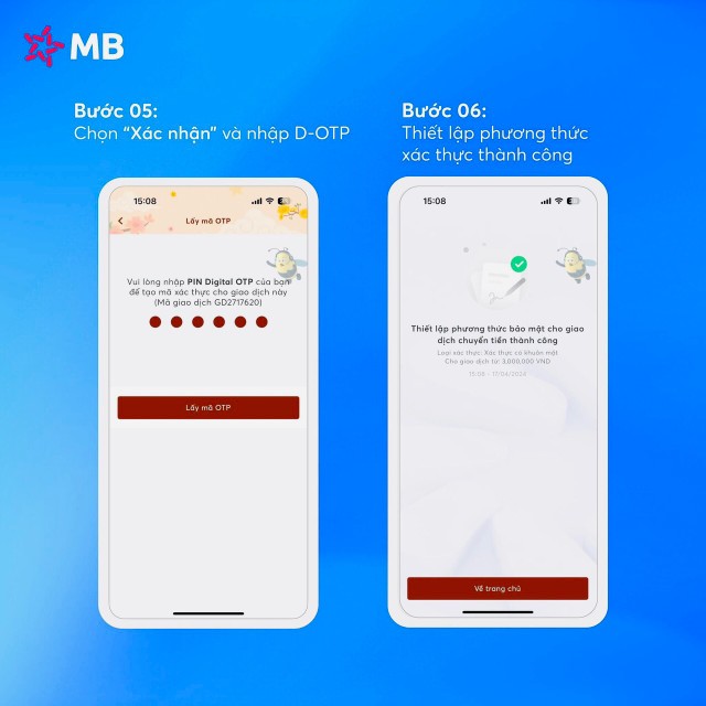 Đại diện MB cũng nhấn mạnh, điều này tăng cường độ phức tạp của quy trình giao dịch khi người dùng cần thực hiện thêm một bước xác thực và cung cấp thông tin sinh trắc học của mình khi chuyển khoản.