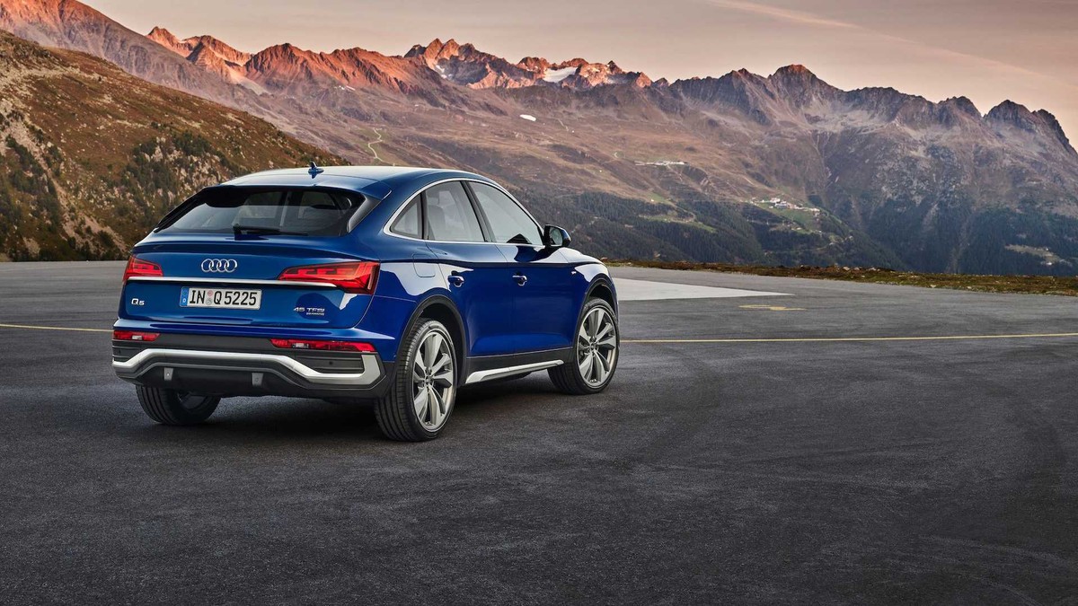 Với biến thể Sportback của dòng Q5 2021, Audi gần như không thay đổi nhiều quá nhiều diện mạo so với bản Q5 tiêu chuẩn. Mang phong cách thể thao đặc trưng, Audi Q5 Sportback 2021 được tinh chỉnh phần mui xe dốc xuống phía đuôi, cửa kính sau nhỏ hơn, cánh gió dài hơn, cửa cốp sau cũng nhỏ hơn, tạo nên dáng vẻ như một chiếc xe Coupe.