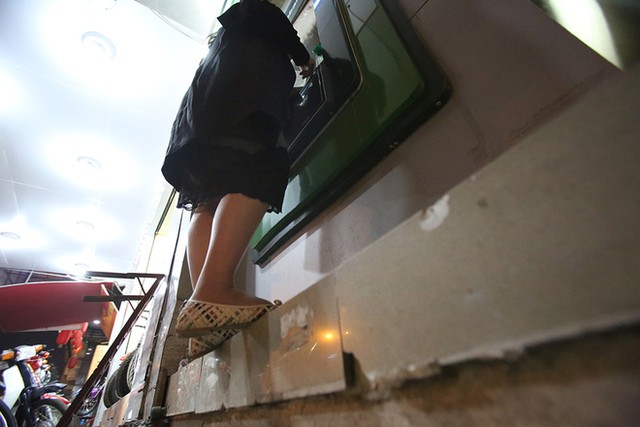 "Tôi tiện đường về qua cây ATM rút tiền, nhưng hôm nay bậc thềm trên vỉa hè bị tháo gỡ, cây rút tiền cao quá phải đu lên để với bàn phím. Bụng bầu nên phải vừa bám vừa giao dịch, chỉ lo ngã", chị Nhung chia sẻ.