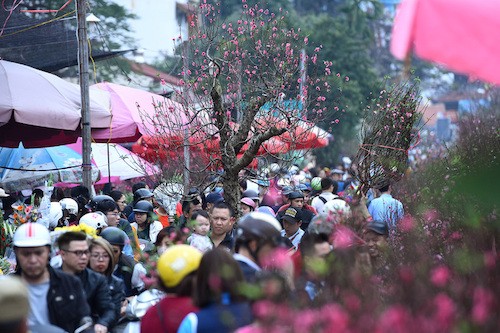 Người Hà Nội sắm đào đón Tết Nguyên đán Kỷ Hợi 2019. Ảnh:Giang Huy.