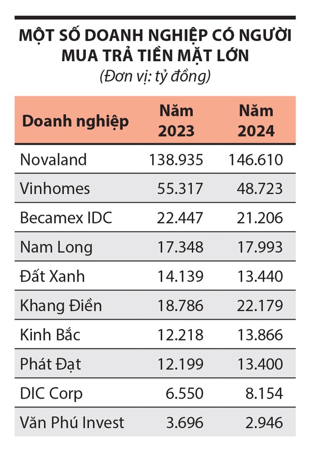 Cũng theo thống kê của VIS Rating, nguồn tiền mặt của nhóm doanh nghiệp bất động sản đã tăng 46% trong năm 2024, đạt mức cao nhất 5 năm qua, nhờ vào dòng tiền mạnh mẽ từ hoạt động đầu tư và hoạt động tài chính. Sự tăng trưởng này được thúc đẩy bởi việc mở rộng khả năng tiếp cận vốn thông qua nguồn vốn vay ngân hàng và các hoạt động tái cấu trúc dự án như mua bán và sáp nhập, hợp đồng hợp tác kinh doanh và chuyển nhượng cổ phần.