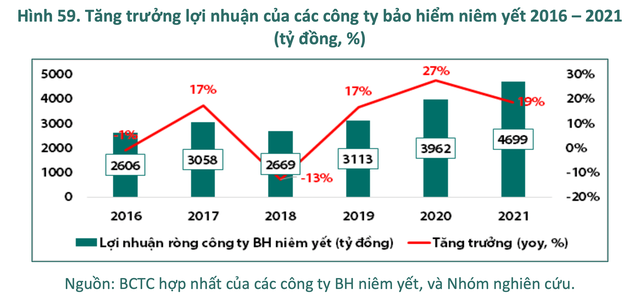 Liên quan đến lợi nhuận ròng của của các công ty bảo hiểm niêm yết, TS. Lực cho biết tăng khoảng 19% trong năm 2021, thấp hơn mức 27% của năm 2020. Mặc dù, lợi suất TPCP và lãi suất tiền gửi ở mức thấp trong giai đoạn 2020 - 2021, nhưng các công ty bảo hiểm cũng chủ động tái cơ cấu danh mục đầu tư của mình sang cổ phiếu, TPDN hoặc ủy thác đầu tư.