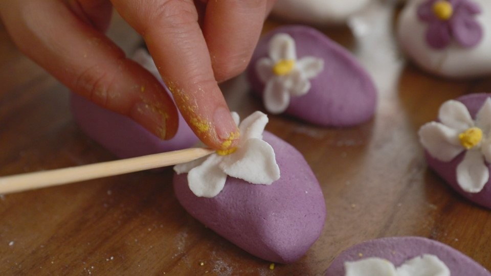 Người Hàn Quốc quan niệm trăng khi tròn khi khuyết giống như cuộc đời của con người, luôn biến đổi để đạt đến hoàn mỹ. Ngày nay, loại bánh này không chỉ có màu trắng. Người ta đã biến tấu songyeon với nhiều màu sắc như hồng, tím, xanh và vàng, trông rất bắt mắt. Ảnh: Maangchi.