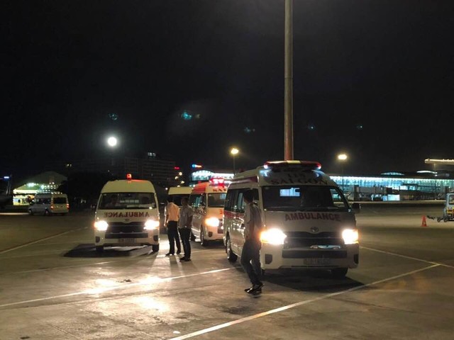 Ba xe cứu thương chờ đón các nạn nhân tại chân máy bay