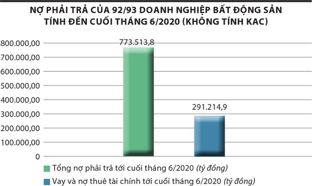 Tính đến cuối tháng 6/2020, dư nợ toàn ngành bất động sản là 161.000 tỷ đồng, tăng 16% so với đầu năm; tỷ lệ dư nợ trên doanh thu tăng nhanh trong quý II, lên mức 0,87 lần so với 0,67 lần của quý IV/2019; tỷ lệ nợ vay trên vốn chủ sở hữu trong quý II là 54%, mức cao nhất kể từ đầu năm 2019.