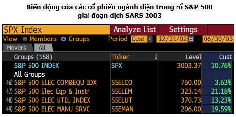 Với những vị thế phòng thủ như trên, nhóm ngành điện luôn là nhóm ngành thu hút được dòng tiền trên thị trường chứng khoán mỗi khi có rủi ro biến động mạnh. Trong dịch SARS 2003, các cổ phiếu ngành điện là những cổ phiếu duy trì được đà tăng tốt nhất trên sàn chứng khoán S&P.