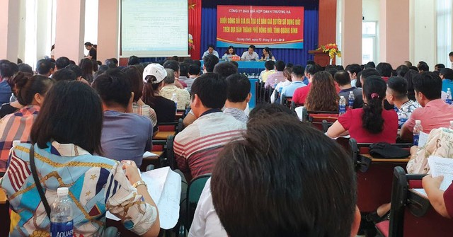 Một buổi đấu giá đất tại dự án quỹ đất do Nhà nước đầu tư tại Đồng Hới vừa qua có sự tham gia của rất đông khách hàng